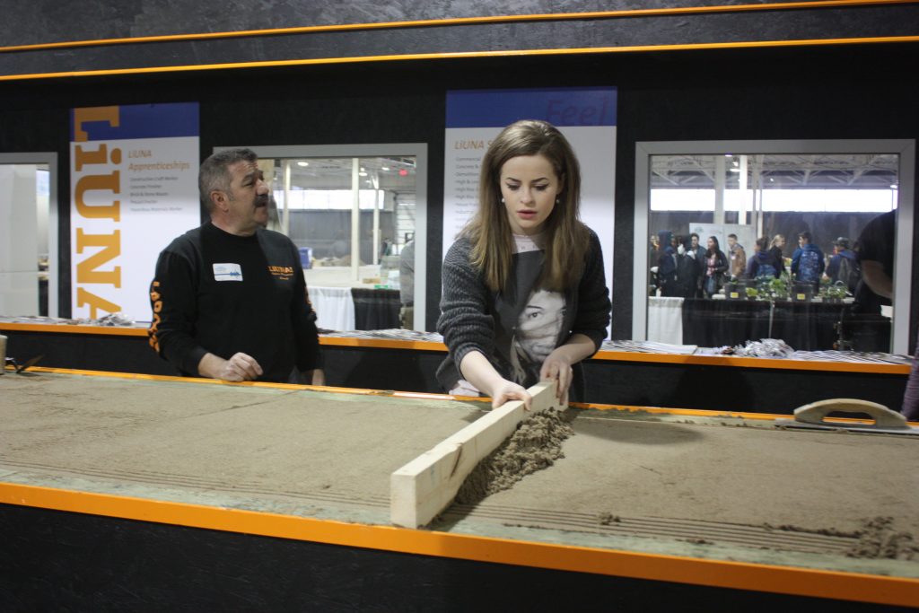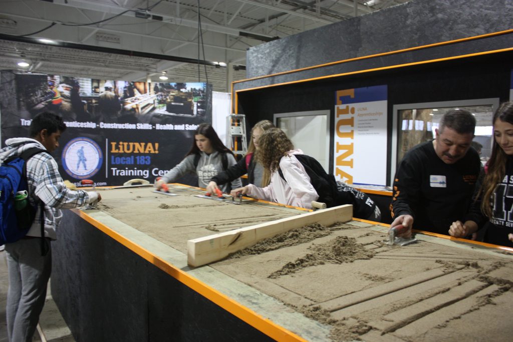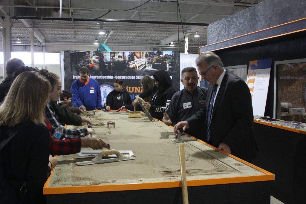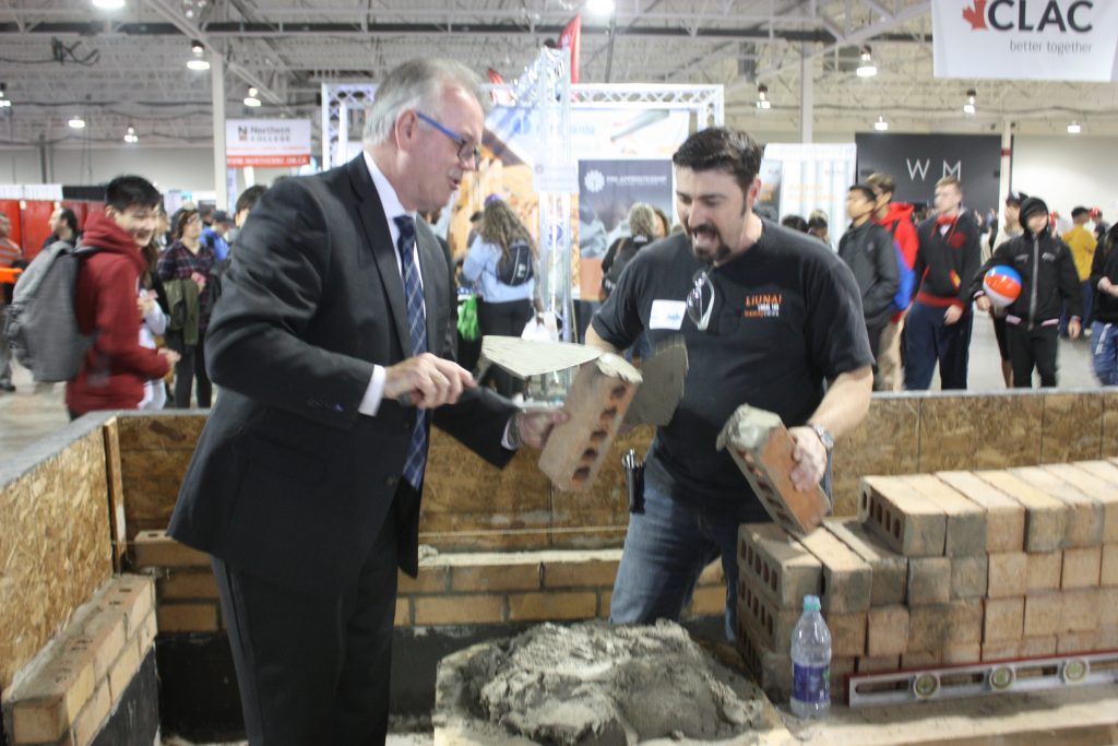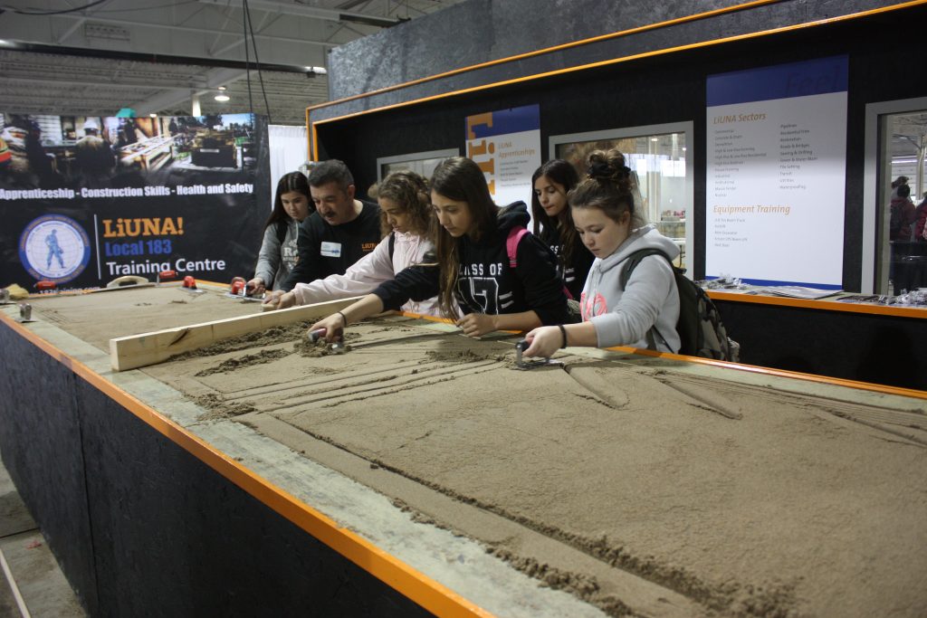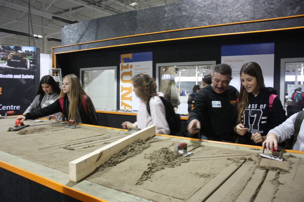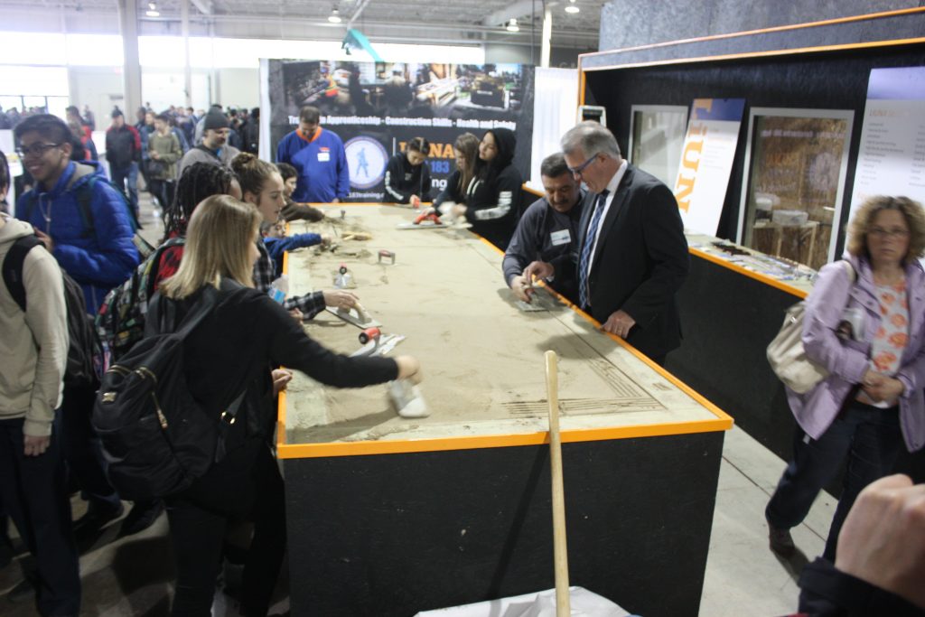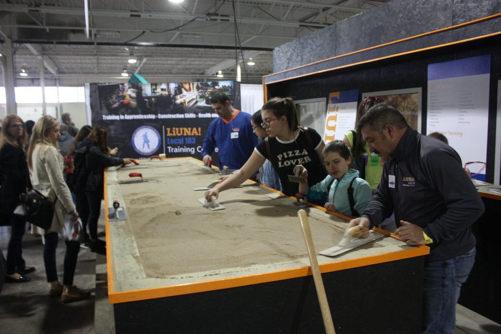 LiUNA Local 183 Training Centre, LiUNA Local 506 Training Centre and the Canadian Tri-Fund partnered together for the 2017 Skills Ontario Competition hosted at the Toronto Congress Centre on May 1st & 2nd! We showcased hands-on displays where were able to highlight the different sectors we represent, such as bricklaying, house framing, cement finishing and demolition. Skills Ontario strives to provide Ontario’s students with experiential learning opportunities to expand their knowledge of the careers available to them within the skilled trades and technologies. Through many of Skills Ontario programs and competitions, which reach thousands of students per year, they are changing the lives and futures of student across the province.